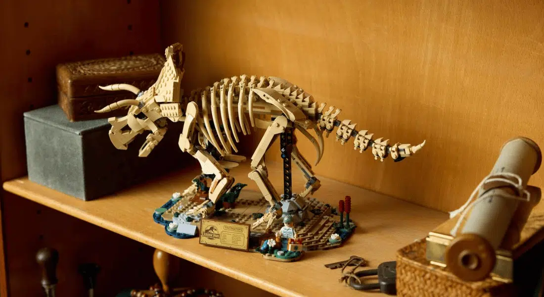 Heb je minder ruimte of een wat kleiner budget, maar wil je wel die Jurassic-vibe? Dan is de Triceratops Dinosaur Fossils set een schot in de roos. Voor €99,99 bouw je een skelet dat niet zou misstaan in een natuurhistorisch museum. Het model is opgebouwd uit 1154 stenen in een lichtbeige botstructuur.