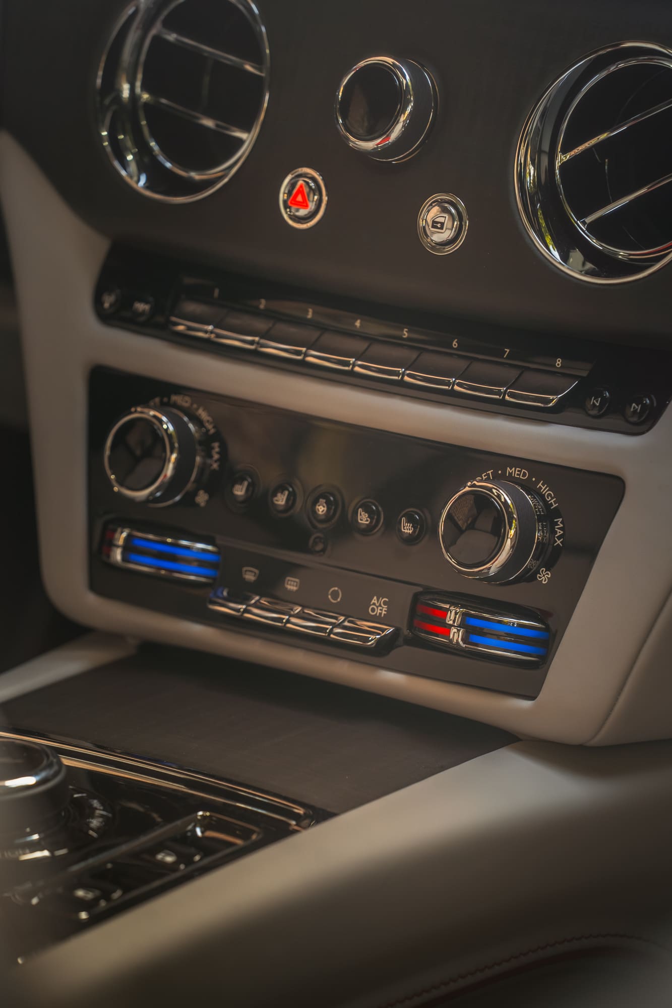 Je zou denken dat een elektrische auto volgestouwd zit met touchscreens en spraakbesturing, maar nee. De Spectre houdt stevig vast aan z’n aristocratische roots. Zo stel je de temperatuur nog steeds in met fysieke ringen: blauw voor koud, rood voor warm. De ventilatieroosters? Die bedien je met kleine metalen pinnetjes die rechtstreeks uit een oude buitenboordmotor lijken te komen. Het is nostalgie op z’n best, met een knipoog naar vakmanschap. En eerlijk: het is een verademing. Zo ook de icoontjes op de knoppen, effectief een Rolls Royce phantom op de auto icoontjes en zo ook op de verlichting “old school” lantaarns. Uiteraard niet de vergeten de paraplu verwerkt in de deur. Overbodig? Ja wellicht, Wicked Cool? Heck yeah! Of zoals de Britten zouden zeggen. Sure Pal.