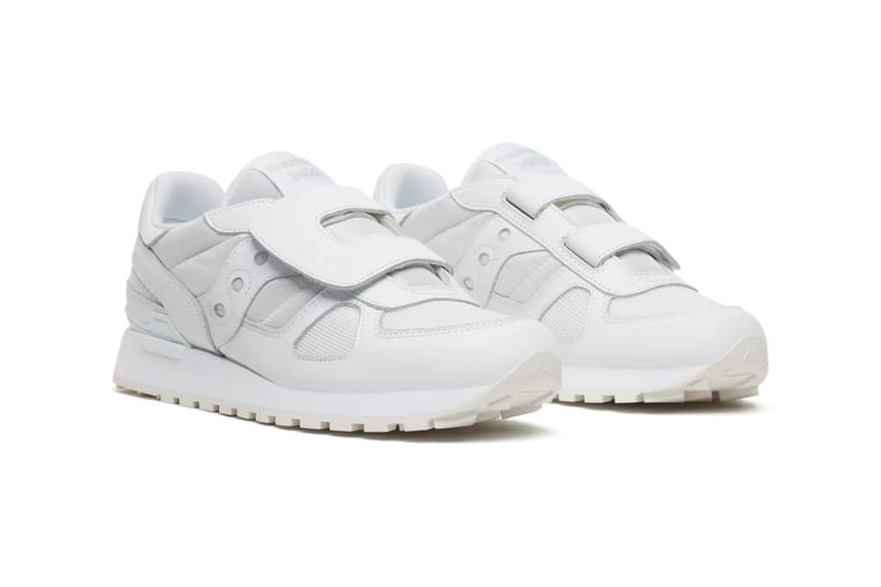 Deze no-nonsense instelling zie je direct terug in de samenwerking met Saucony. De Shadow Original, een echte klassieker uit de archieven van Saucony, is door Suzuki gestript van zijn traditionele vetersysteem. In plaats daarvan krijg je twee stevige Velcro-straps. Hierdoor stap je supersnel in en uit je sneakers, zonder dat het ten koste gaat van de stevigheid. Het geeft de schoen een frisse, utilitaire twist die perfect past bij een moderne, dagelijkse outfit.